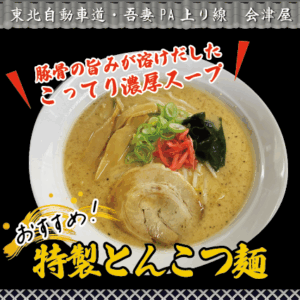 吾妻PA上り線 会津屋 おすすめ!【特製とんこつ麺】