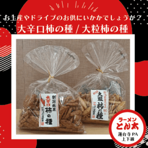 大粒で食べ応えのある柿の種そのものの風味が味わえる商品となっております。 こちらの商品は『大辛口柿の種』販売中です。 刺激のある辛いのがお好きな方にお勧めです お土産やドライブのお供にいかかでしょうか? ご来店の際はぜひ是非チェックしてみてください。 スタッフ一同、ご来店をお待ちしております。
